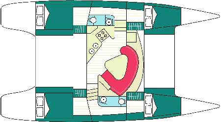 seated comfortably. Matou is the four cabins and two heads layout, and